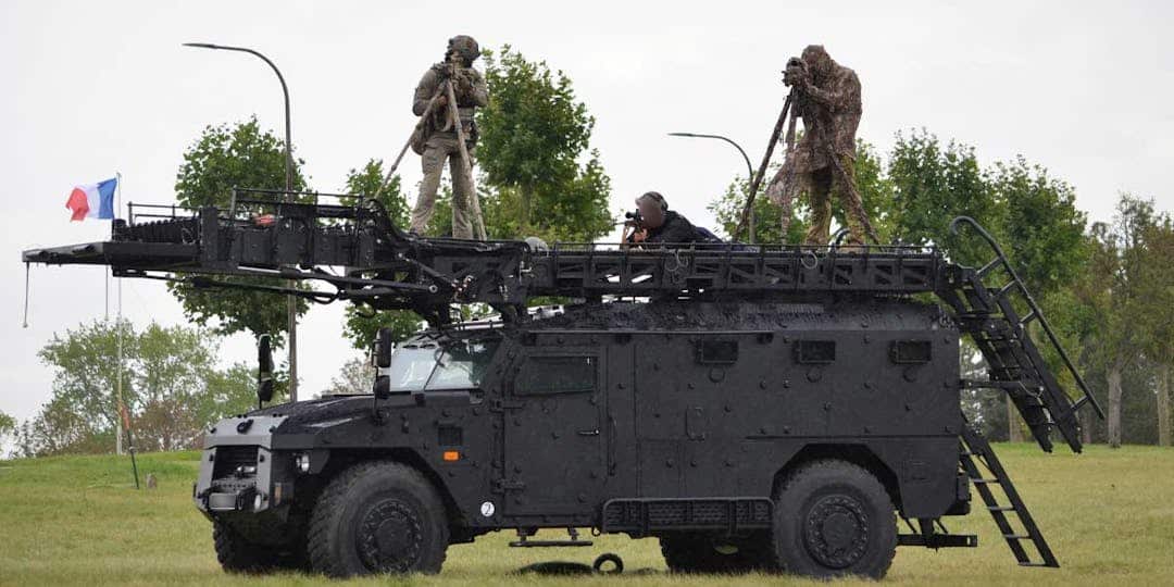 Photo : Trois tireurs d'élite du GIGN postés sur le toit du véhicule blindé "Sherpa" s'apprêtent à effectuer un tir coordonné. (Photo: LP/L'Essor)